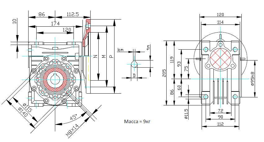 | Мощность двигателя, кВт | Частота вращения выходного вала, об/мин | Крутящий момент, Нм | Сервис-фактор | Передаточное число | Двигатель IEC | Радиальная нагрузка, Н |
