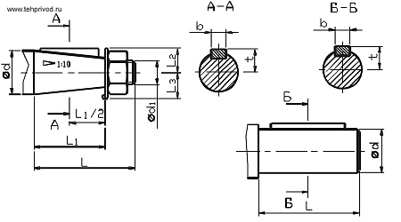 | ТИП | ВЫХДНЫЕ КОНЦЫ ВАЛОВ | L | L1 | L2 | L3 | b | d | d1 | t | m |