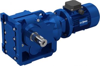 Коническо-цилиндрические мотор редукторы применяются, когда габариты места, выделенного под приводную установку, не позволяют использовать цилиндрическую схему. Наличие конической пары поворачивает электродвигатель под углом 90, поэтому конфигурация корпуса получается идентичной червячному редуктору. Приводы серии К удобно использовать для замены червячных редукторов, обеспечивая больший КПД, надежность и возможность эксплуатировать оборудование (например, грузоподъемное устройство) в более интенсивном режиме. В серии К значение передаточного числа превышает 100, что полностью перекрывает диапазон червячных одноступенчатых передач.